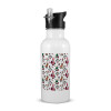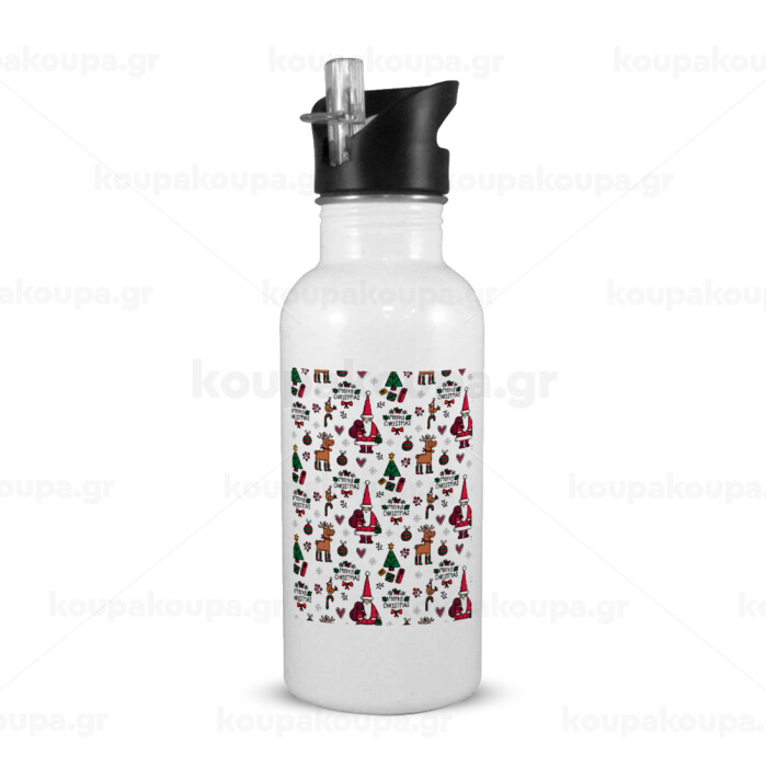 Santas, Deers & Trees, Παγούρι νερού Λευκό με καλαμάκι, ανοξείδωτο ατσάλι 600ml