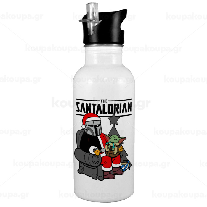 Star Wars Santalorian, Παγούρι νερού Λευκό με καλαμάκι, ανοξείδωτο ατσάλι 600ml
