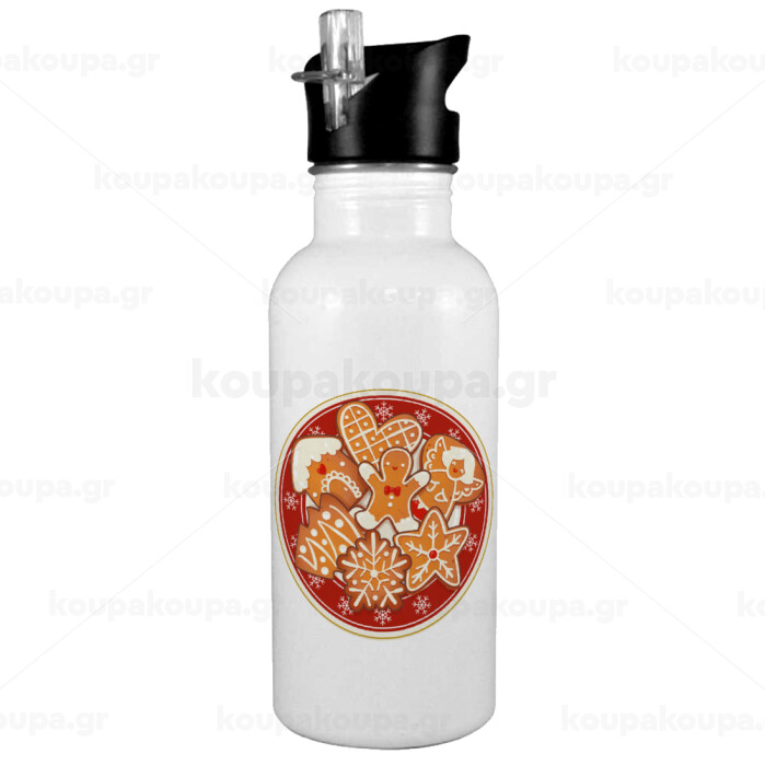 xmas cookies, Παγούρι νερού Λευκό με καλαμάκι, ανοξείδωτο ατσάλι 600ml