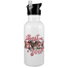 Best mom ever Mother's Day, Παγούρι νερού Λευκό με καλαμάκι, ανοξείδωτο ατσάλι 600ml