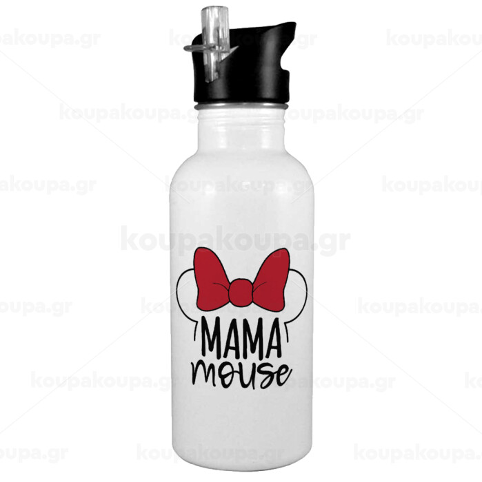 MAMA mouse, Παγούρι νερού Λευκό με καλαμάκι, ανοξείδωτο ατσάλι 600ml