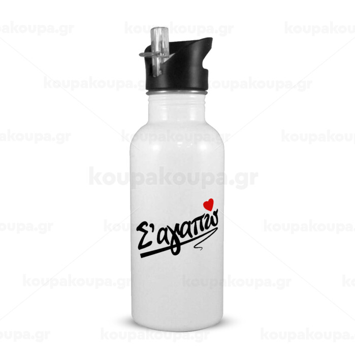 Σ΄ αγαπώ!!!, Παγούρι νερού Λευκό με καλαμάκι, ανοξείδωτο ατσάλι 600ml
