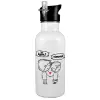 Τι έχεις? Τίποτα!, Παγούρι νερού Λευκό με καλαμάκι, ανοξείδωτο ατσάλι 600ml