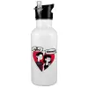 Τι έχεις? Τίποτα!, Παγούρι νερού Λευκό με καλαμάκι, ανοξείδωτο ατσάλι 600ml