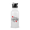 Happy Valentines Day!!!, Παγούρι νερού Λευκό με καλαμάκι, ανοξείδωτο ατσάλι 600ml