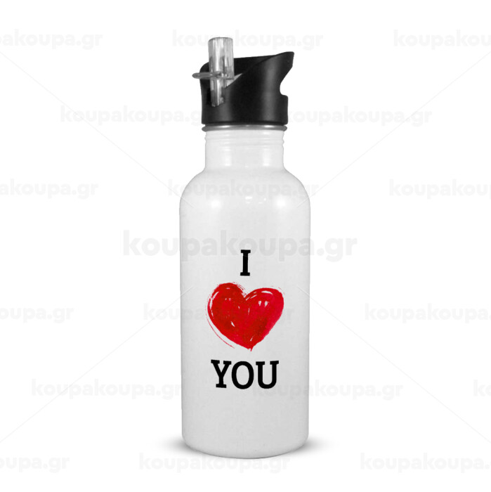I Love You, Παγούρι νερού Λευκό με καλαμάκι, ανοξείδωτο ατσάλι 600ml