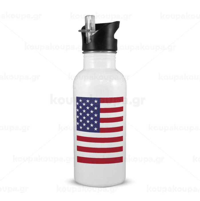Σημαία Αμερικής, Παγούρι νερού Λευκό με καλαμάκι, ανοξείδωτο ατσάλι 600ml