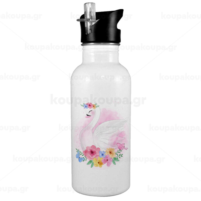 Λευκός κύκνος, Παγούρι νερού Λευκό με καλαμάκι, ανοξείδωτο ατσάλι 600ml
