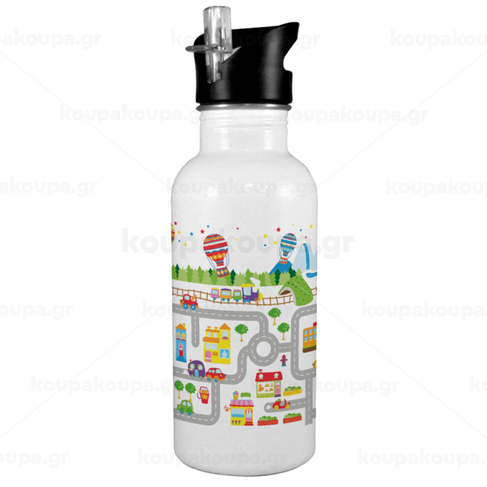 City road track maps, Παγούρι νερού Λευκό με καλαμάκι, ανοξείδωτο ατσάλι 600ml
