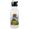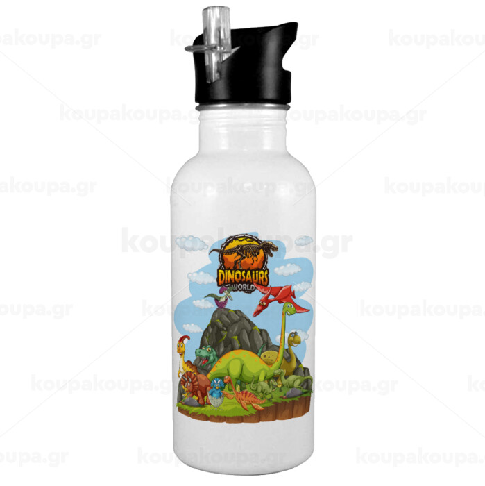 Dinosaur's world, Παγούρι νερού Λευκό με καλαμάκι, ανοξείδωτο ατσάλι 600ml