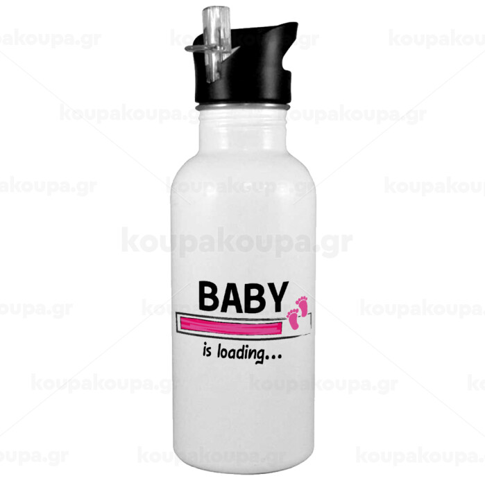Baby is Loading GIRL, Παγούρι νερού Λευκό με καλαμάκι, ανοξείδωτο ατσάλι 600ml