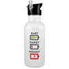 BABY, MOMMY, DADDY Low battery, Παγούρι νερού Λευκό με καλαμάκι, ανοξείδωτο ατσάλι 600ml