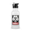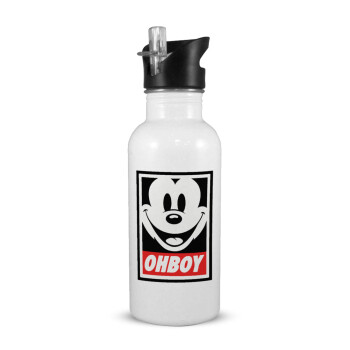 Oh boy μίκυ, Παγούρι νερού Λευκό με καλαμάκι, ανοξείδωτο ατσάλι 600ml