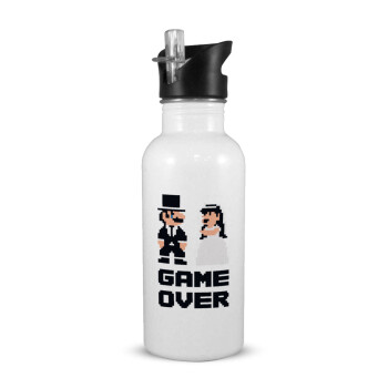 8bit Game Over Couple Wedding, Παγούρι νερού Λευκό με καλαμάκι, ανοξείδωτο ατσάλι 600ml