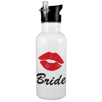 Bride kiss, Παγούρι νερού Λευκό με καλαμάκι, ανοξείδωτο ατσάλι 600ml