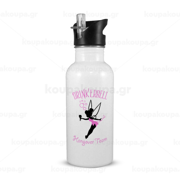 Drinkerbell bachellor, Παγούρι νερού Λευκό με καλαμάκι, ανοξείδωτο ατσάλι 600ml