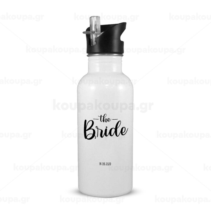 Groom & Bride (Bride), Παγούρι νερού Λευκό με καλαμάκι, ανοξείδωτο ατσάλι 600ml