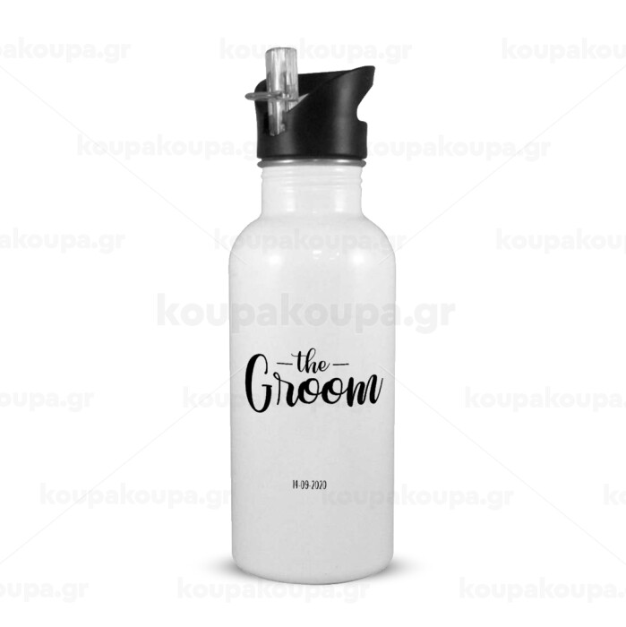 Groom & Bride (Groom), Παγούρι νερού Λευκό με καλαμάκι, ανοξείδωτο ατσάλι 600ml