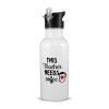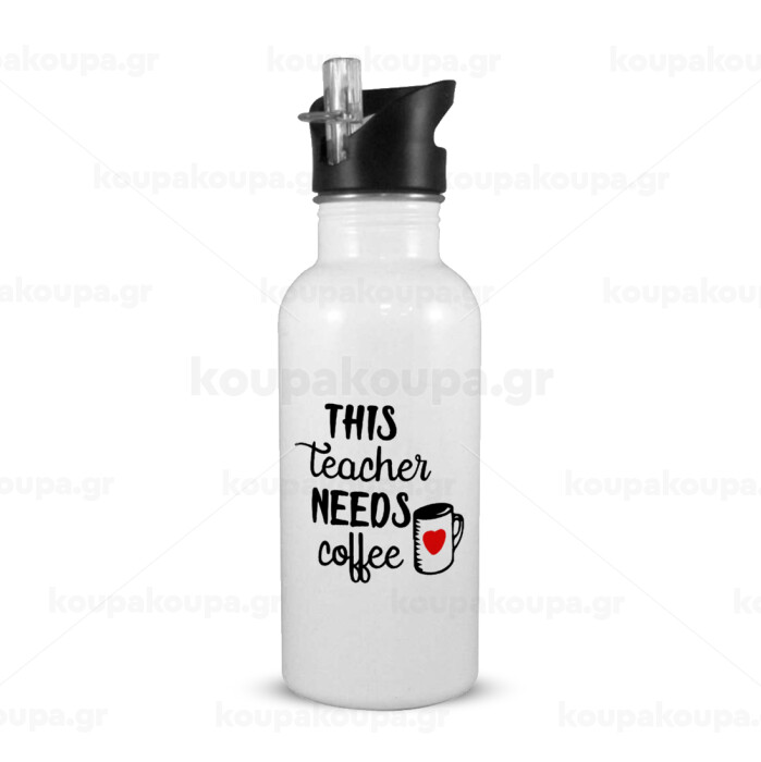 Τhis teacher needs coffee, Παγούρι νερού Λευκό με καλαμάκι, ανοξείδωτο ατσάλι 600ml
