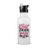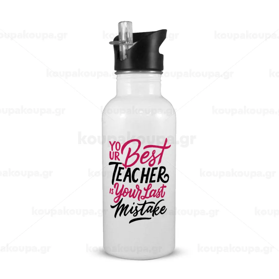 Typography quotes your best teacher is your last mistake, Παγούρι νερού Λευκό με καλαμάκι, ανοξείδωτο ατσάλι 600ml