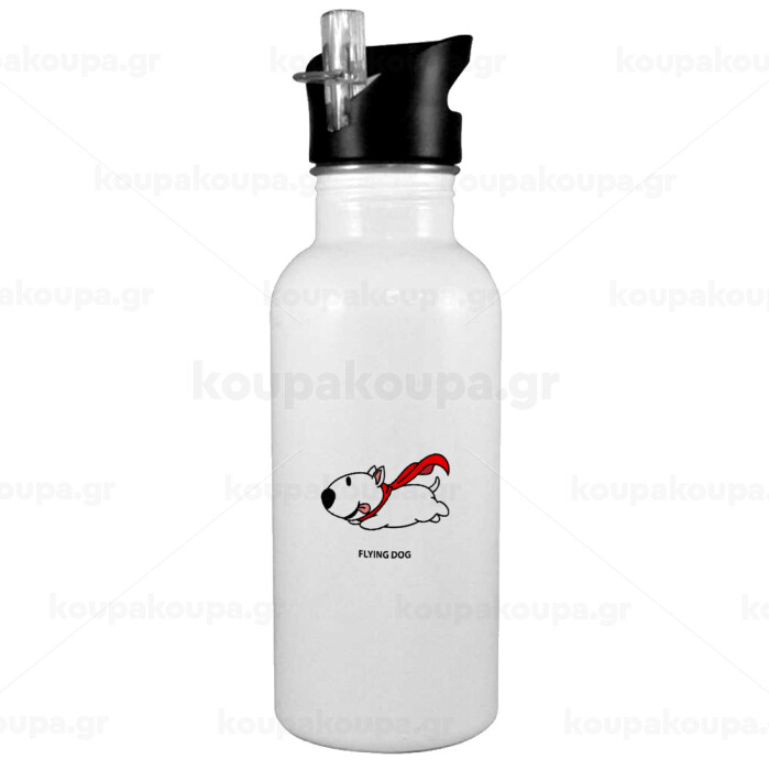 Flying DOG, Παγούρι νερού Λευκό με καλαμάκι, ανοξείδωτο ατσάλι 600ml