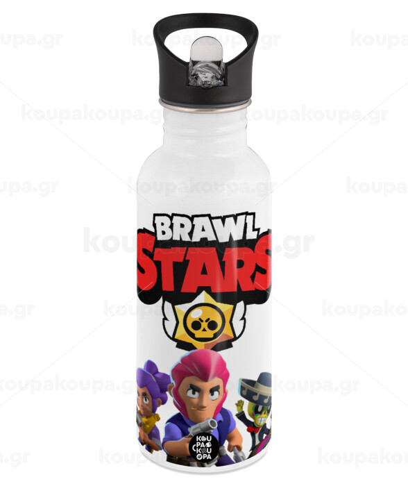 Brawl Stars Blue, Παγούρι νερού Λευκό με καλαμάκι, ανοξείδωτο ατσάλι 600ml