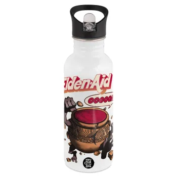 Elden-Aid, Elden Ring inspired , Παγούρι νερού Λευκό με καλαμάκι, ανοξείδωτο ατσάλι 600ml