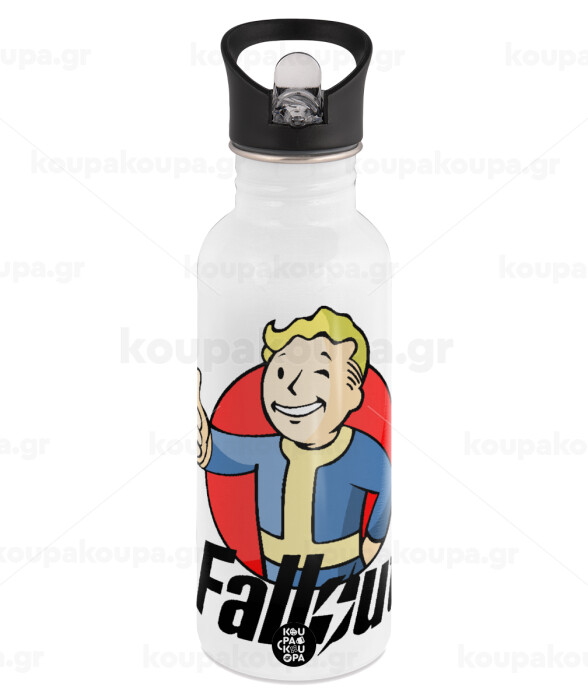 Fallout Vault Boy, Παγούρι νερού Λευκό με καλαμάκι, ανοξείδωτο ατσάλι 600ml