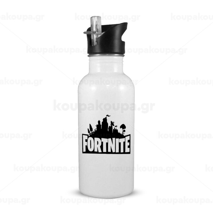 Fortnite, Παγούρι νερού Λευκό με καλαμάκι, ανοξείδωτο ατσάλι 600ml