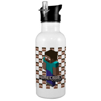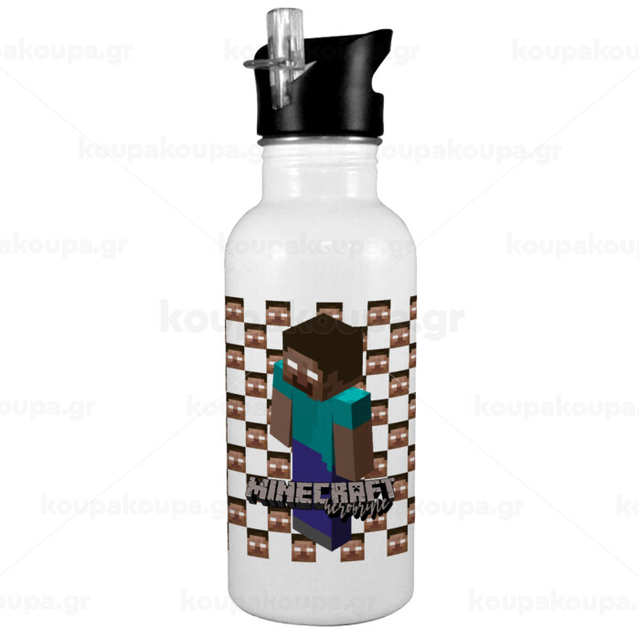 Minecraft herobrine, Παγούρι νερού Λευκό με καλαμάκι, ανοξείδωτο ατσάλι 600ml