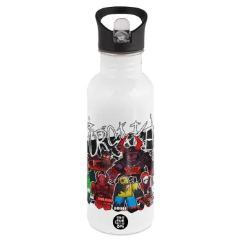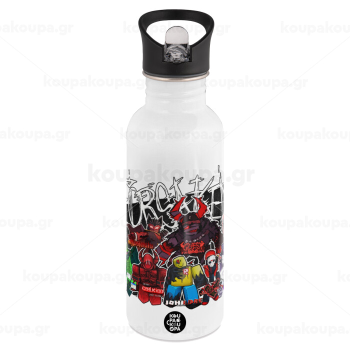 Roblox Forsaken, Παγούρι νερού Λευκό με καλαμάκι, ανοξείδωτο ατσάλι 600ml