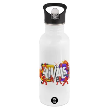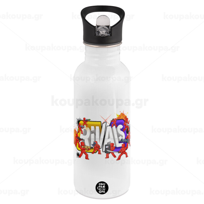 Roblox Rivals, Παγούρι νερού Λευκό με καλαμάκι, ανοξείδωτο ατσάλι 600ml