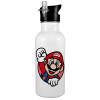 Super mario win, Παγούρι νερού Λευκό με καλαμάκι, ανοξείδωτο ατσάλι 600ml