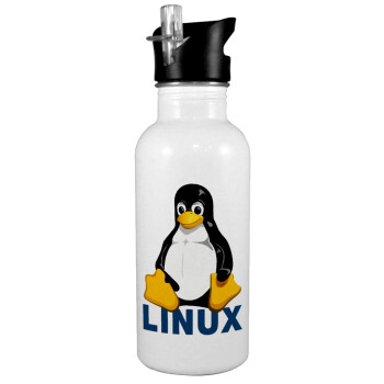 Linux, Παγούρι νερού Λευκό με καλαμάκι, ανοξείδωτο ατσάλι 600ml