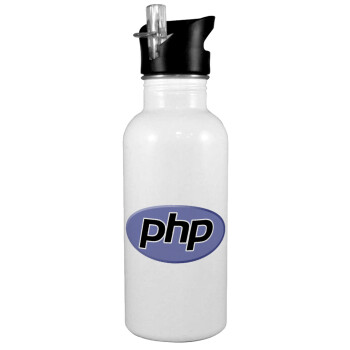 PHP, Παγούρι νερού Λευκό με καλαμάκι, ανοξείδωτο ατσάλι 600ml