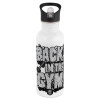 Back in the GYM, Παγούρι νερού Λευκό με καλαμάκι, ανοξείδωτο ατσάλι 600ml