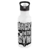 Back in the GYM, Παγούρι νερού Λευκό με καλαμάκι, ανοξείδωτο ατσάλι 600ml