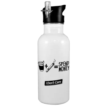 Spend Money, Παγούρι νερού Λευκό με καλαμάκι, ανοξείδωτο ατσάλι 600ml