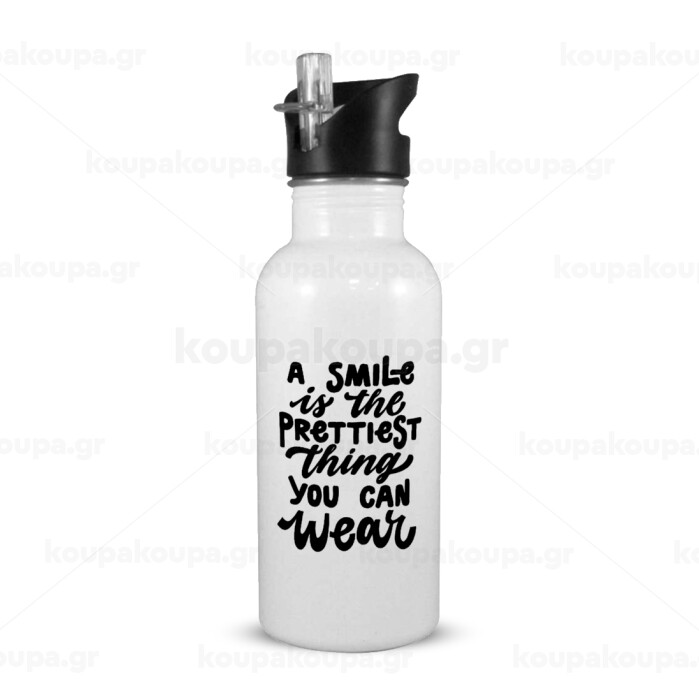 A smile is the prettiest thing you can wear, Παγούρι νερού Λευκό με καλαμάκι, ανοξείδωτο ατσάλι 600ml