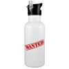 Wanted, Παγούρι νερού Λευκό με καλαμάκι, ανοξείδωτο ατσάλι 600ml