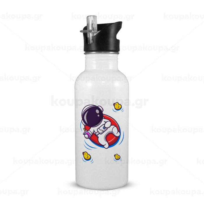 Μικρός αστροναύτης θάλασσα, Παγούρι νερού Λευκό με καλαμάκι, ανοξείδωτο ατσάλι 600ml