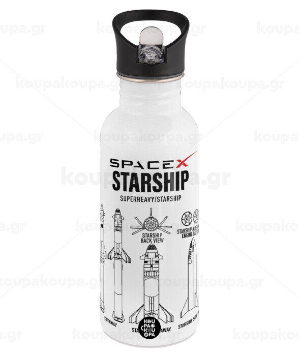 Space X, Παγούρι νερού Λευκό με καλαμάκι, ανοξείδωτο ατσάλι 600ml