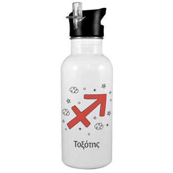 Ζώδια Τοξότης, Παγούρι νερού Λευκό με καλαμάκι, ανοξείδωτο ατσάλι 600ml