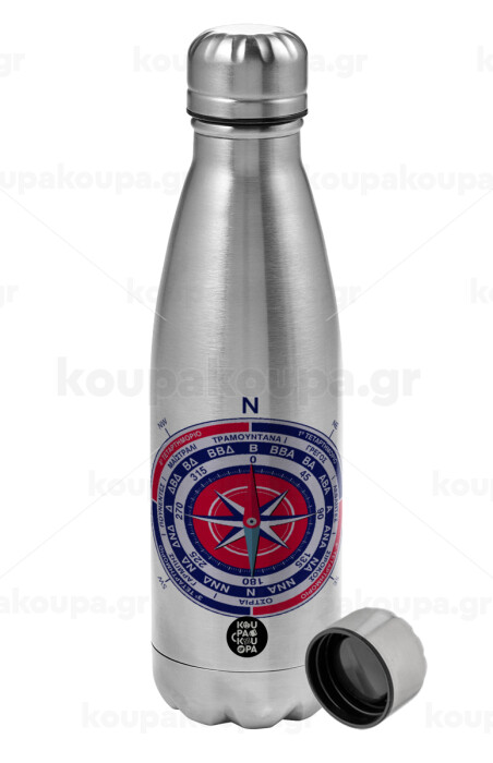 Ανεμολόγιο χάρτης πυξίδα ναυτικού, Μεταλλικό παγούρι νερού, ανοξείδωτο ατσάλι, 750ml