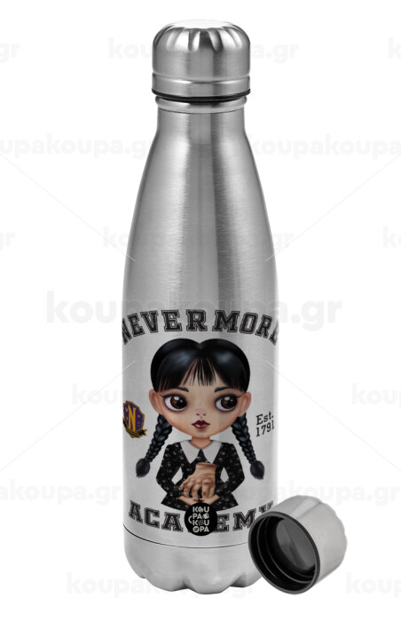 Wednesday Adams, nevermore, Μεταλλικό παγούρι νερού, ανοξείδωτο ατσάλι, 750ml