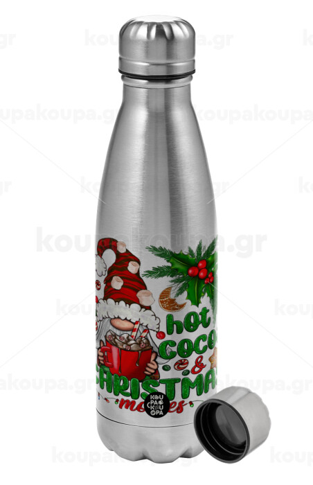 Hot cocoa and Christmas movies, Μεταλλικό παγούρι νερού, ανοξείδωτο ατσάλι, 750ml