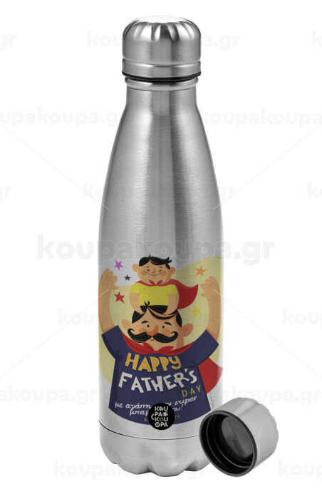 Happy Fathers Day με όνομα, Μεταλλικό παγούρι νερού, ανοξείδωτο ατσάλι, 750ml