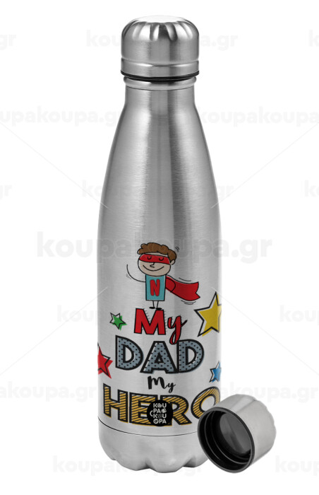 My Dad, my Hero!!!, Μεταλλικό παγούρι νερού, ανοξείδωτο ατσάλι, 750ml