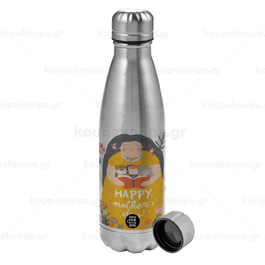 Cute mother reading book, happy mothers day, Μεταλλικό παγούρι νερού, ανοξείδωτο ατσάλι, 750ml