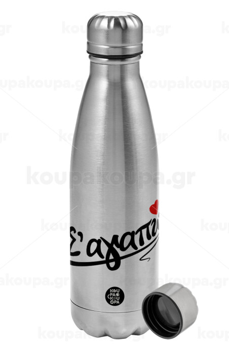 Σ΄ αγαπώ!!!, Μεταλλικό παγούρι νερού, ανοξείδωτο ατσάλι, 750ml